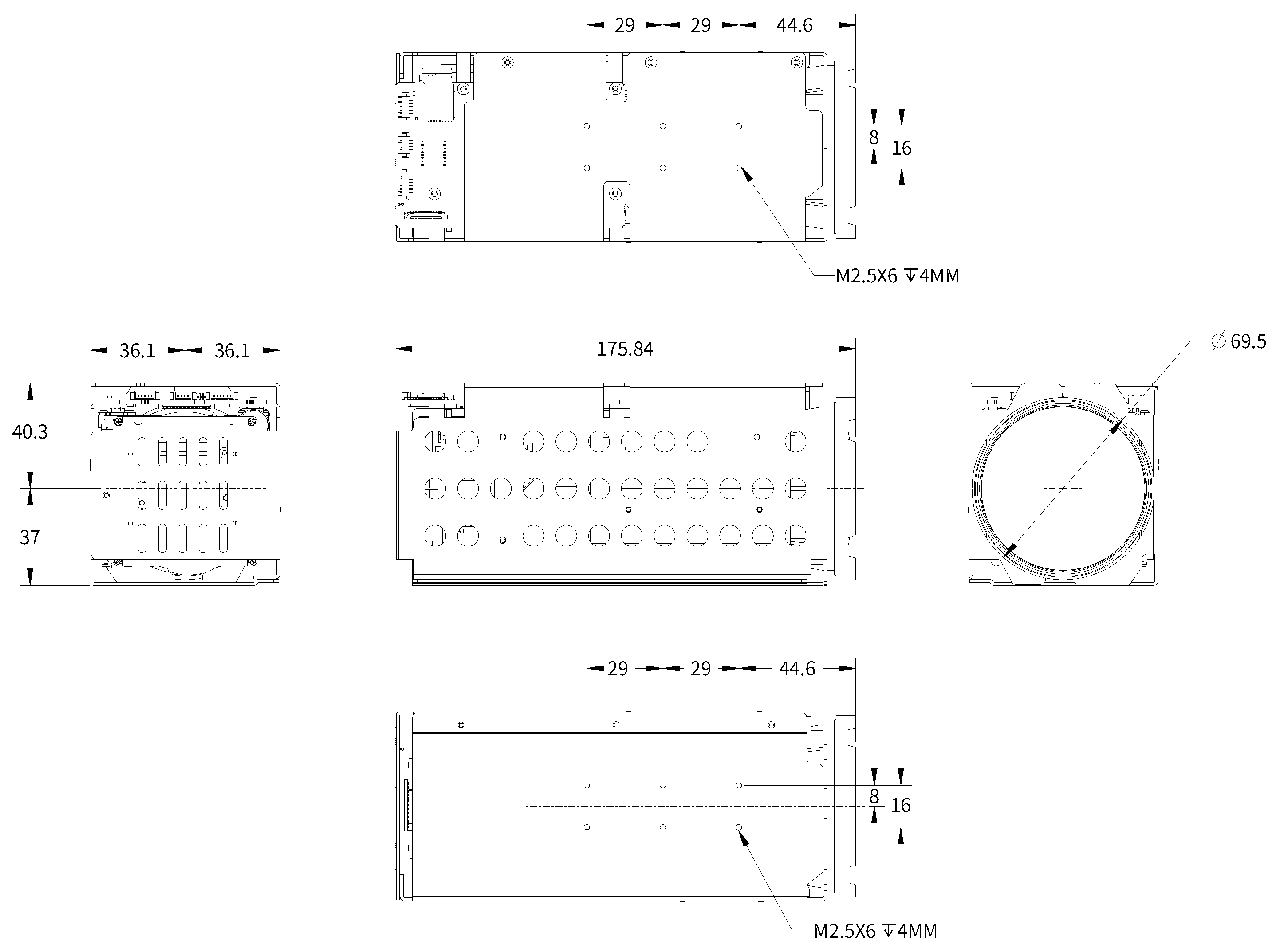 4PIN Ethernet Port, 6pin Power & Uart Power & Uart Port, 5pin Audio Port. 30pin mipi |