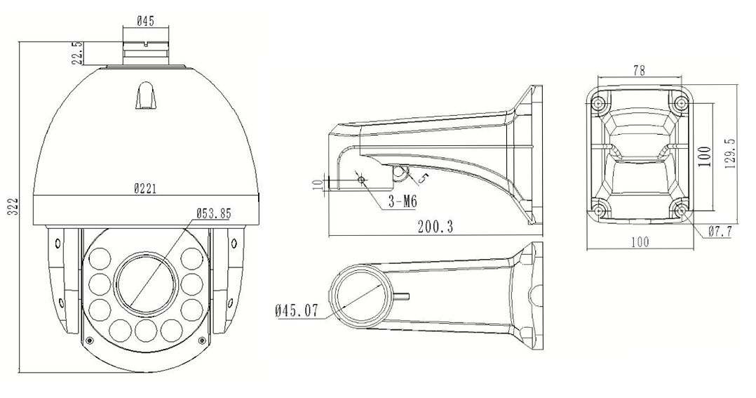Манай PTZ камер нь 6 кг жинтэй, хялбар суурилуулах зориулалттай, lev221mm of 3 кг жинтэй.
